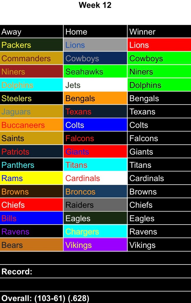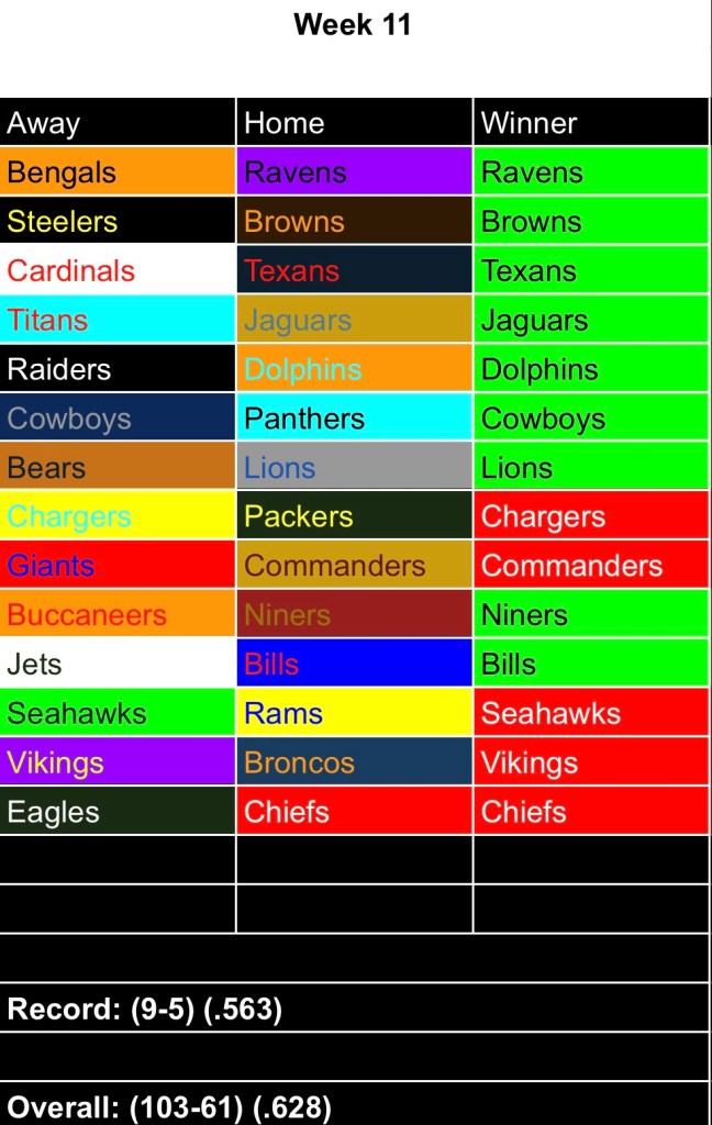 Week 11 was, in my opinion, pretty mid. If you consider that the Seahawks, Vikings, and Chiefs all lost at like, the very of end of those games, I could’ve been looking at an outstanding 12-2 instead. It’s fine. Let’s talk bets.