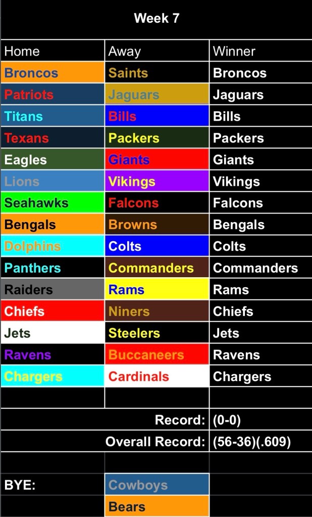 Week 7 is upon us, and there’s some great matchups going down this week. Let’s take a look: