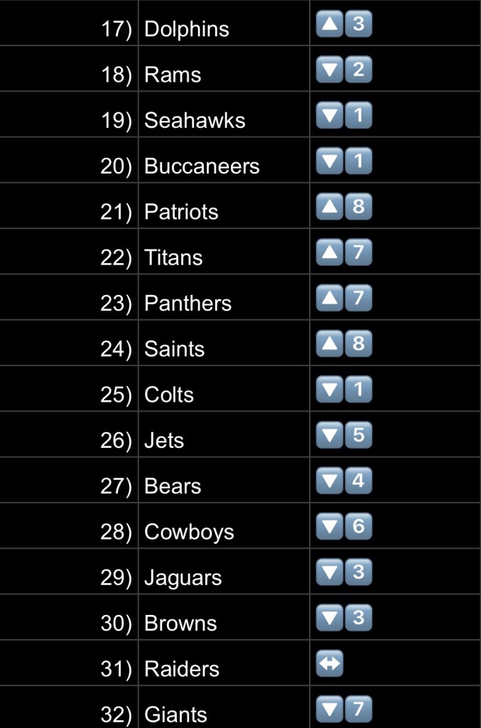 22. Titans – This is less about a genuine improvement by Tennessee and more about how truly pathetic some of these other teams are. Next up: Minnesota comes to town.