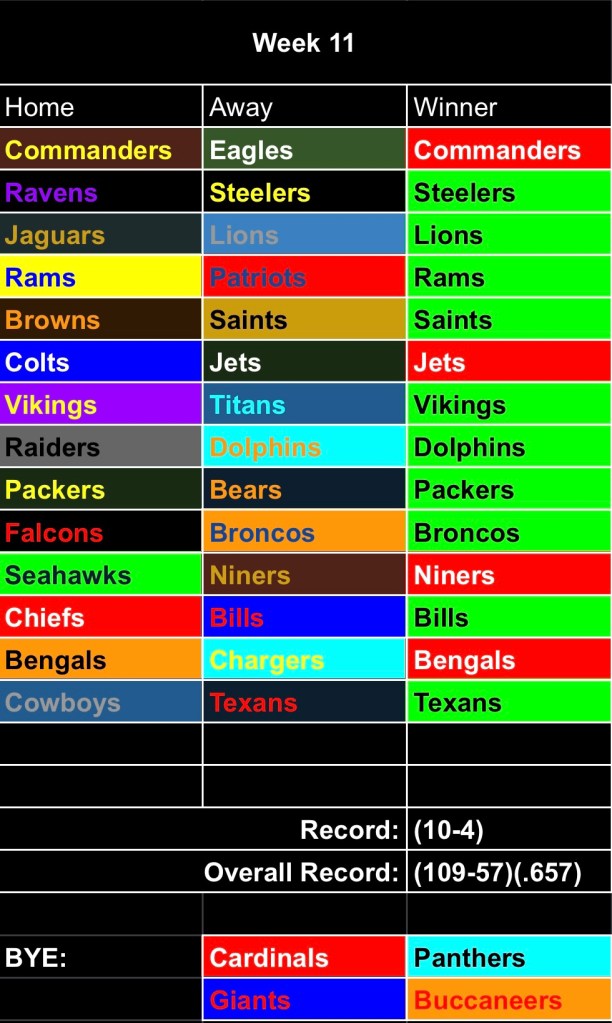 Commanders – Poor judgment on my end, the Eagles are clearly a more complete team.