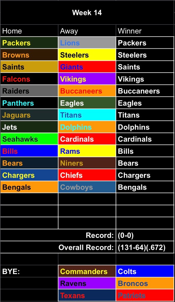 Browns @ Steelers – If you’re Pittsburgh, any loss to the Browns is infuriating, but losing twice is blasphemy. Cleveland hasn’t had a series sweep since 1988. I was -10 then. It just can’t happen.