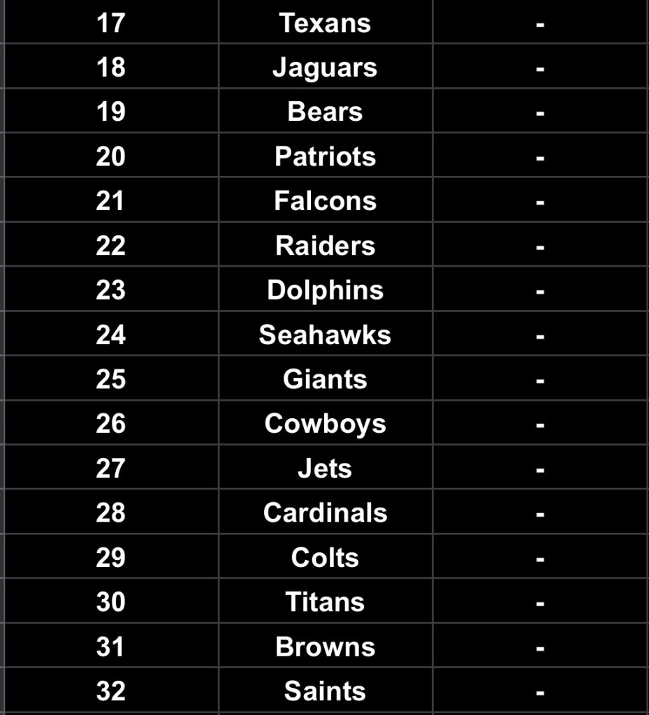 The thing I love about doing a Power Ranking before anyone has even played a snap is that I can just kinda do whatever with it. Really, it’s a list of preconceived notions that I’ve got about everyone. And slowly, over the season, it pretty much works itself out into something pretty close to reality. Not doing a Top 10 breakdown today, though, too much work.