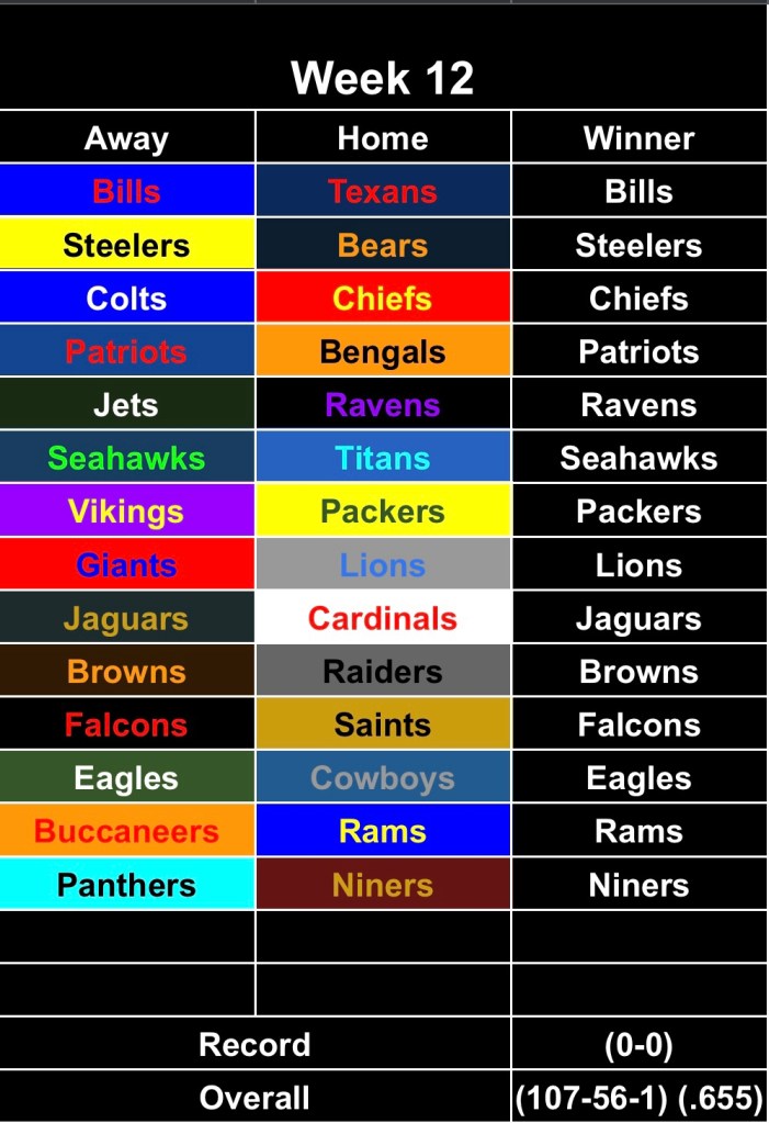 Week 12 Picks